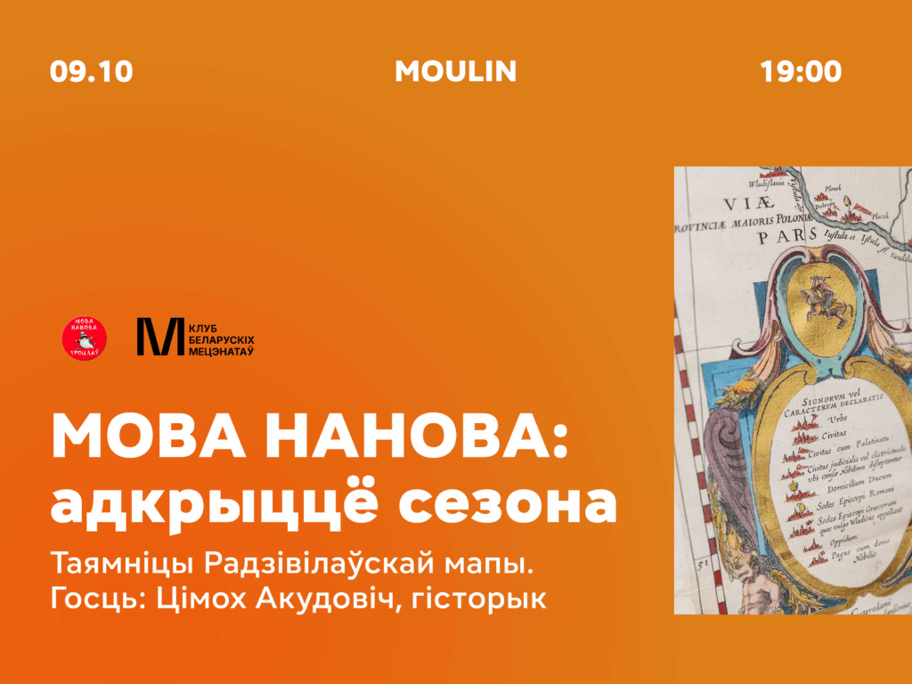9 кастрычніка ў кавярні MOULIN стартуе новы сезон праекта “Мова Нанова”. Госцем першай сустрэчы стане вядомы гісторык Цімох Акудовіч. Ён прадставіць арыгінал Радзівілаўскай мапы XVII стагоддзя. Наведвальнікі змогуць убачыць артэфакт на свае вочы, даведацца пра гісторыю яго стварэння і значэнне для сучаснай Беларусі, а таксама адкрыць для сябе таямніцы, якія хавае мапа. Асаблівая ўвага будзе…